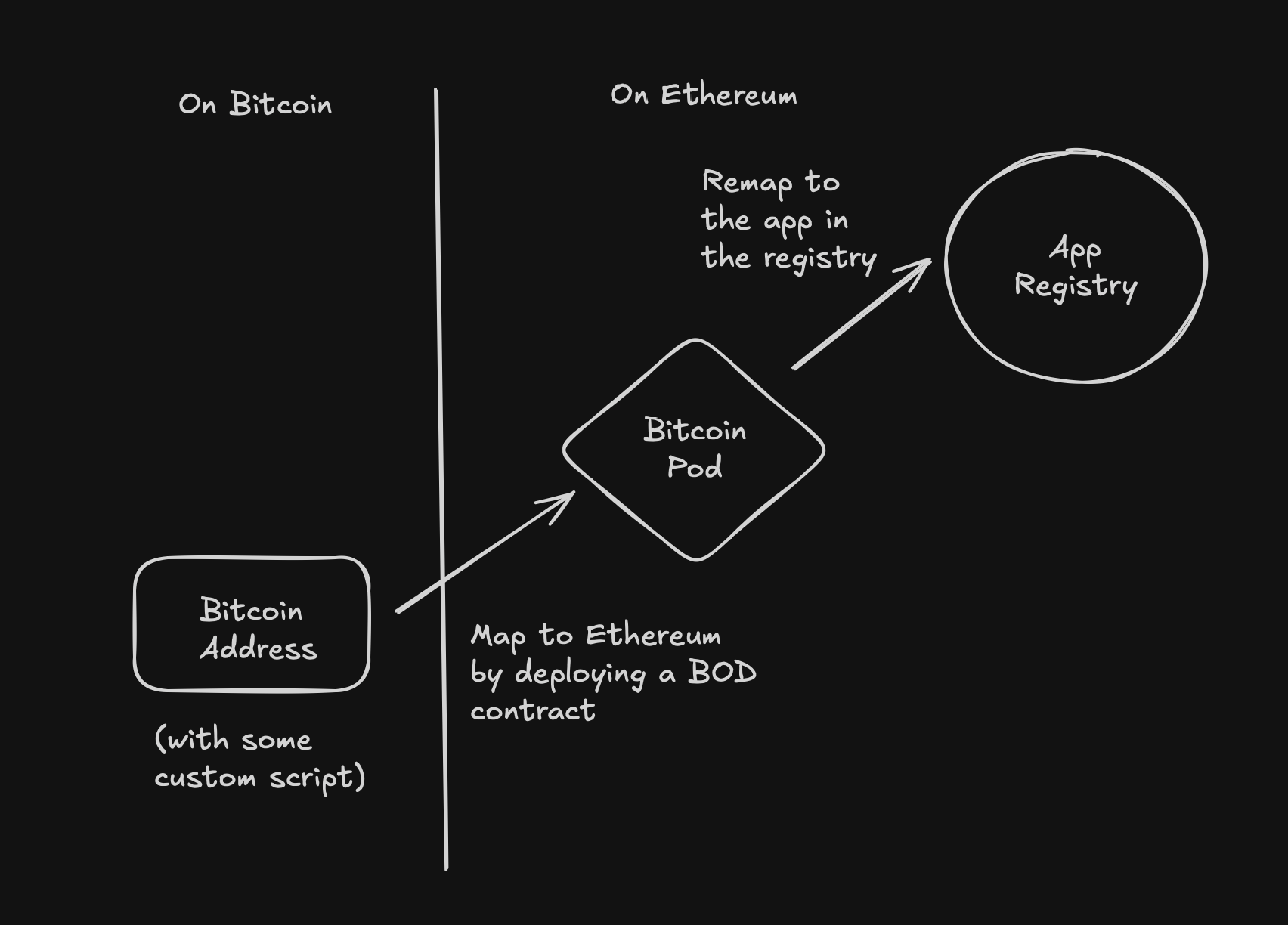 Map a bitcoin address to a BitcoinPod contract